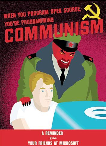 I recently saw a pic on Flickr that disturbed me. The pic says “When you program open source, you’re programming Communism” Later in the pic it mentions “A reminder from your friends at Microsoft”