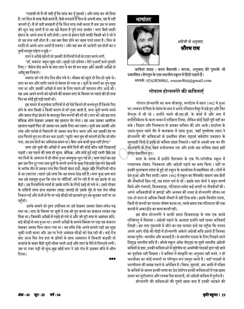 गोपाल होन्नलगेरे का हिंदी अनुवाद (जून 2025)