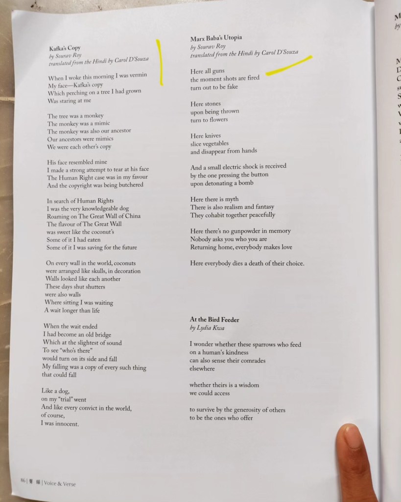 Poetry translation by Carol D’Souza, published in Voice & Verse, a Hong Kong-based magazine